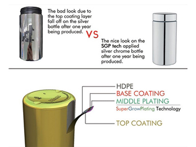 L'apparence métallique des bouteilles ajoute un sens de force et de qualité sans dépense ou ajout de poids pour l'emballage métallique. Ces bouteilles fournissent cependant une résistance électrique, thermique et à la corrosion.